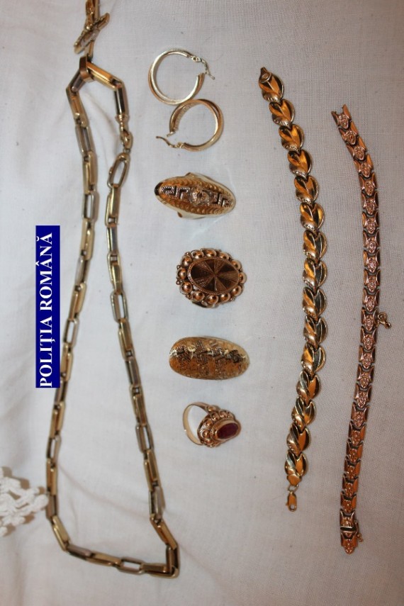 În urma percheziţiei, poliţiştii au ridicat, în vederea continuării cercetărilor, 46.266 de lei, 3.825 de euro, 50 de lire sterline şi 229,9 grame de bijuterii din aur, despre care există suspiciunea că provin din camătă.