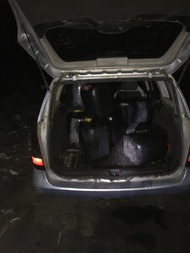 La vederea echipajului, două dintre persoane au fugit în direcţia unui autoturism Opel Astra Caravan parcat în apropierea tir-ului -cisternă. Au fost somate şi s-au oprit. Cea de-a treia persoană, şoferul tir-ului era cocoţat pe cisternă şi cu ajutorul unui furtun, transfera motorină dintr-un rezervor desigilat, în bidoanele aflate jos. La faţa locului, lângă cisternă şi în portbagajul autoturismului, jandarmii au găsit 16 bidoane din plastic, de 20 de litri, din care şapte bidoane pline şi unul pe jumătate, cu motorină. Asupra celor două persoane şi în autoturism, a mai fost găsită şi suma de 1220 ron. Cei doi au declarat că au stabilit şi au „bătut palma” cu şoferul cisternei, pentru un preţ de 3,5 lei/litru de motorină.