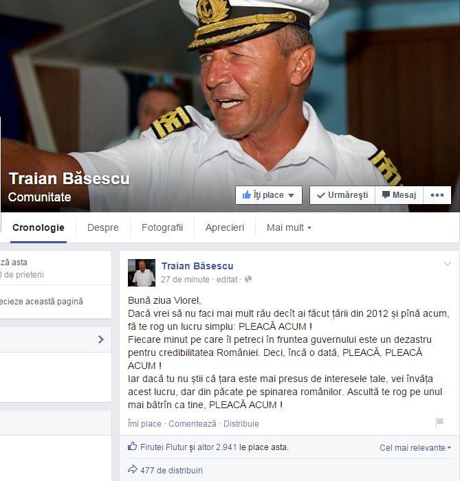 Traian Băsescu către Victor Ponta: "Pleacă acum!"