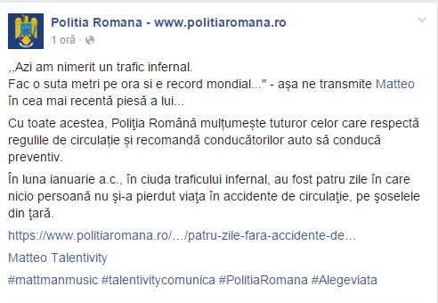 Poliţia Română s-a folosit de melodia lui, recomandând-o oamenilor. Oamenii legii recomandă șoferilor respectarea regulilor de circulație și condusul preventiv.