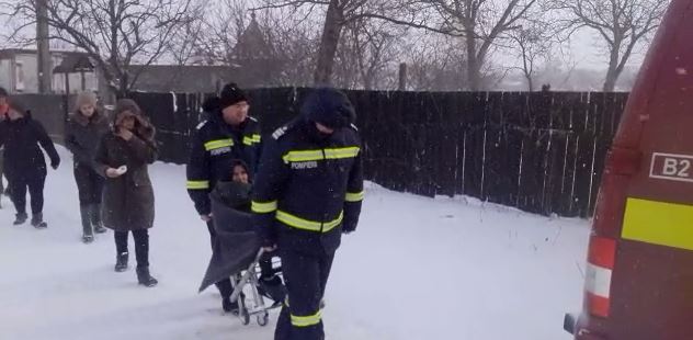 Din cauza drumurilor pline de zăpadă, militarii au fost nevoiţi să care pe braţe victima până la ambulanţă.
