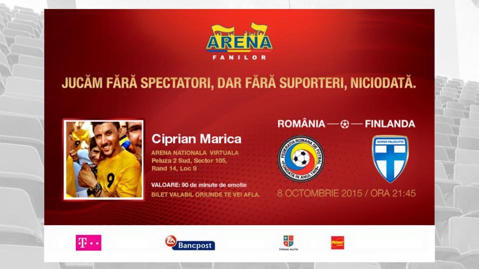 Federația Română de Fotbal oferă, pentru prima oară în istoria fotbalului românesc, posibilitatea microbiștilor să fie alături de echipa națională, chiar și pe un stadion suspendat.Meciul România - Finlanda, programat joi, 8 octombrie, la București, pe Arena Națională, în preliminariile EURO 2016, se va disputa fără spectatori, în urma deciziei UEFA.