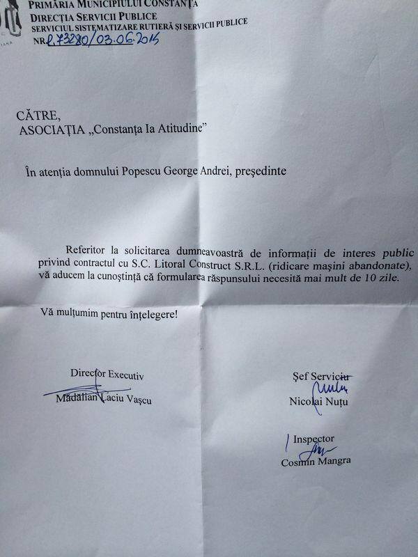 Primăria Constanța tace Contractul cu Litoral Connect firma care ridică mașinile abandonate, ținut la secret (document)