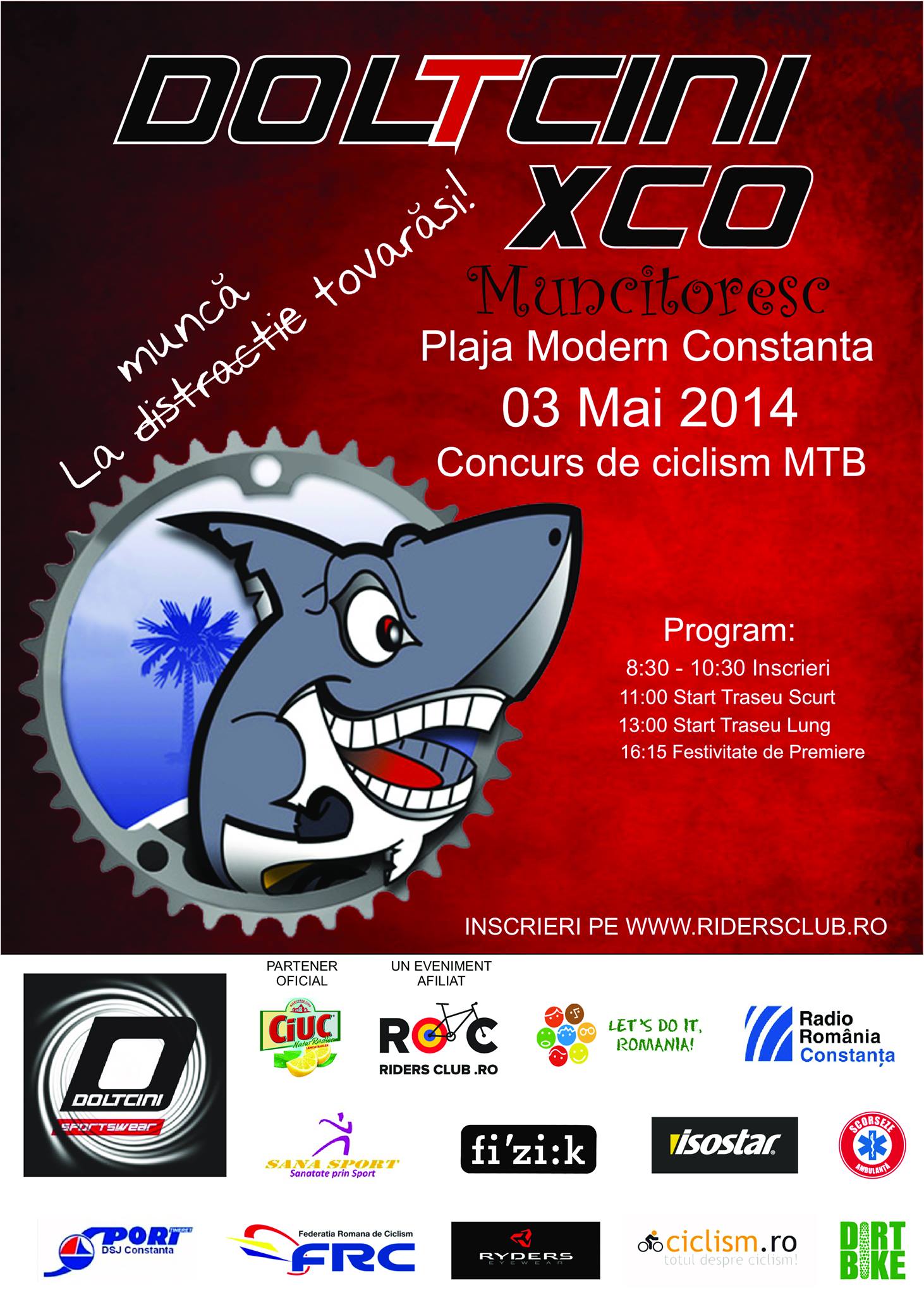 Înscrierile online se pot face pe website-ul oficial http://www.ridersclub.ro/en/cycling-race/doltcini-xco