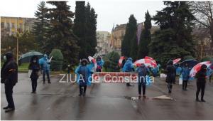 “Protestul tăcerii”: Angajaţii din sistemul sanitar au protestat în faţa Prefecturii cu măşti pe faţă