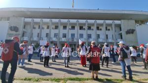 “Protestul tăcerii” Angajaţii din sistemul sanitar au protestat în faţa Prefecturii cu măşti pe faţă