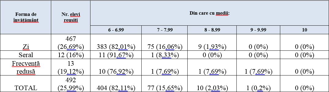 Pe forme de învățământ, promovabilitatea la nivelul județului se prezintă astfel: