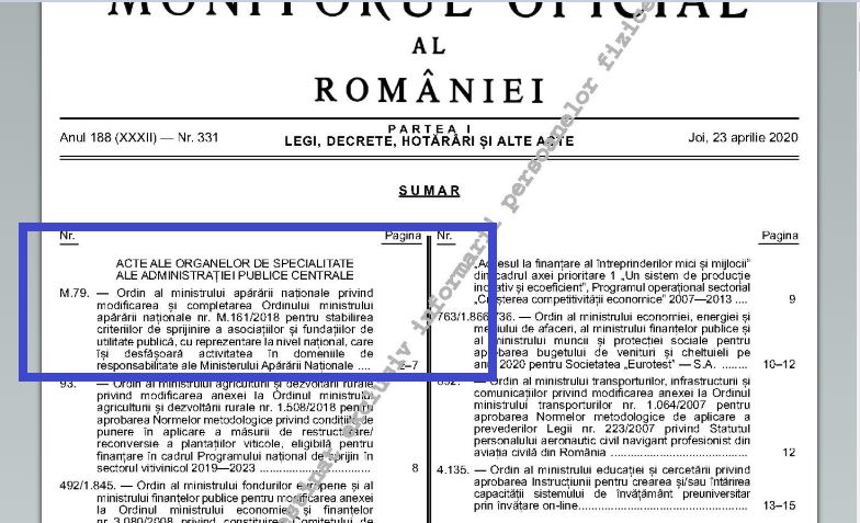 S-a publicat în Monitor Ordinul ministrului apărării pentru stabilirea criteriilor de sprijinire a asociațiilor și fundațiilor de utilitate publică