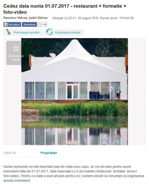 S-au despărţit înainte de căsătorie şi şi-au vândut nunta pe OLX. Cine sunt mirii
