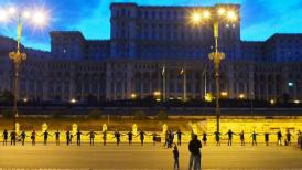 Concertul are loc chiar în faţa Palatului Parlamentului, iar securitatea este asigurată de zeci de jandarmi care patrulează în jurul scenei.