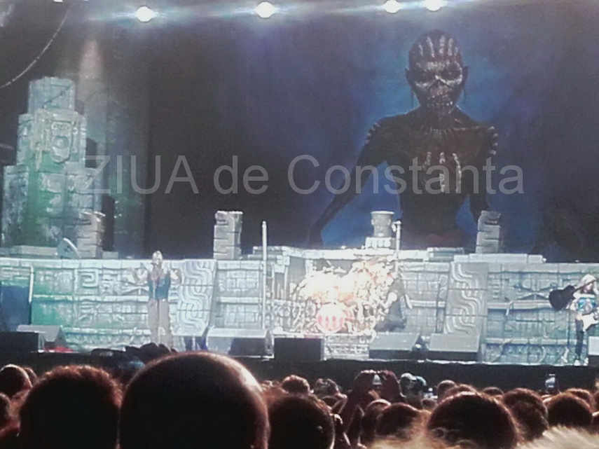 Eddie, mascota Iron Maiden, are o înălţime de 3 metri şi este amplasată pe scena concertului din Piaţa Constituției.