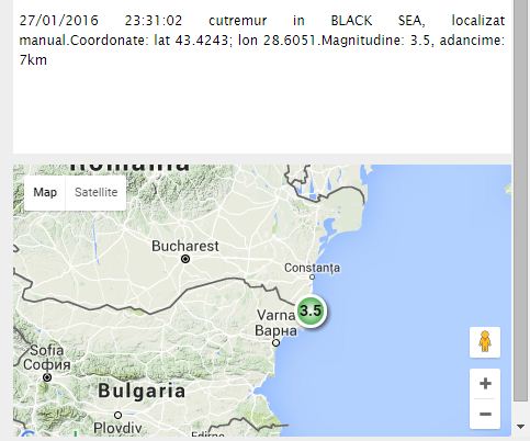 Al treilea cutremur, de 3.5 grade, a fost înregistrat în largul Mării Negre, la șapte kilometri adâncime, la ora 23.31, în apropiere de Mangalia.