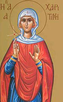Sfânta Haritina a vieţuit în timpul împăratului Diocleţian (284-305). Rămasă orfană de mică, ea a fost crescută de creştinul Claudiu.Dometie, dregătorul împărătesc, auzind că Haritina este creştina, a chemat-o la judecată înaintea tribunalului: "Este adevărat, tânăro, că fiind creştină tu însăţi, îi mai înşeli şi pe alţii, ademenindu-i la credinţa ta profană?"