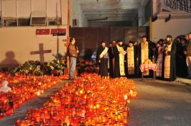 Slujbă de pomenire pentru victimele de la Colectiv în fața fostului club