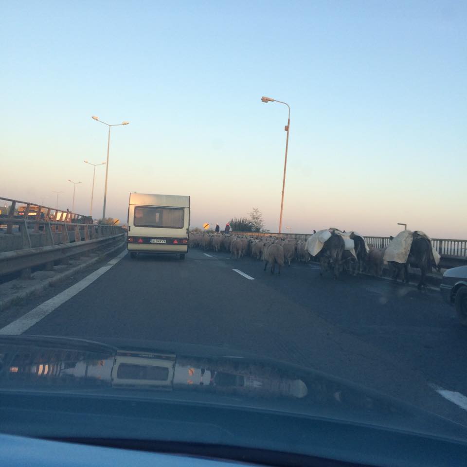 Nu este un lucru nou faptul că turme de oi, capre sau cirezi de vaci umblă nestingherite sau chiar însoțite de ciobani pe Autostrada Soarelui.De data aceasta, însă, o turmă de oi a fost surprinsă pe podul de la Cernavodă, astăzi, la ora 7.30, direcția de mers către București. Șoferii sunt sfătuiți să aibă ochii-n patru și să conducă prudent.