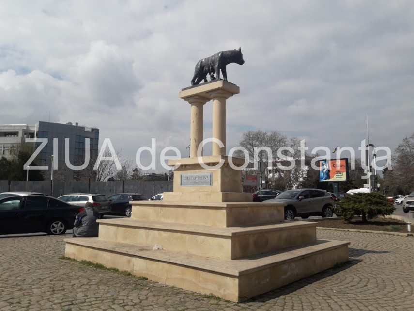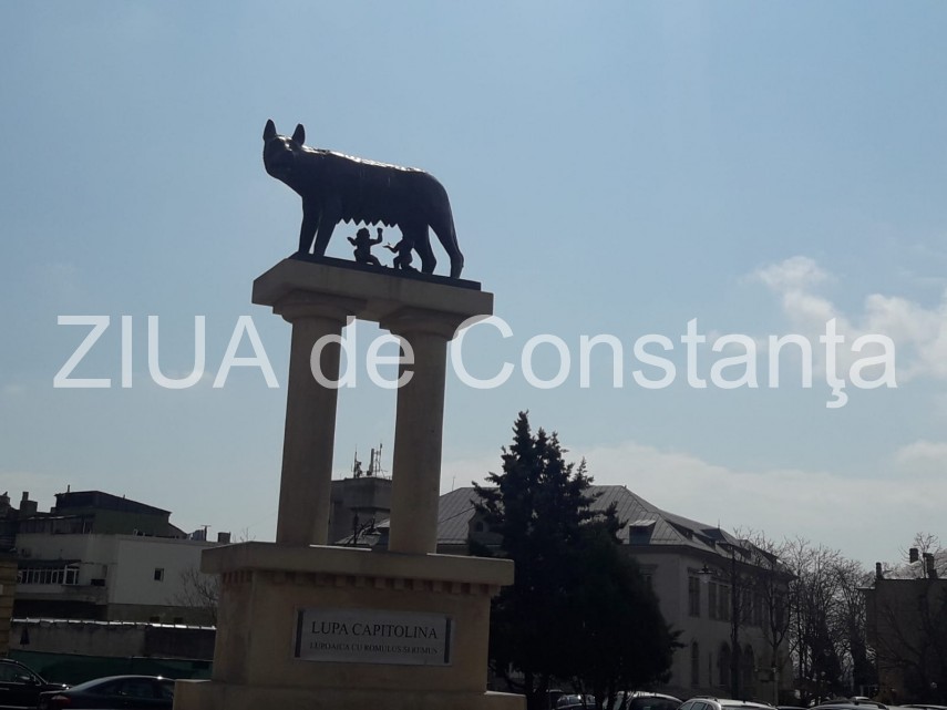 Statuia Lupa Capitolina din Constanţa, readusă la starea iniţială. Remus şi Romulus au fost aşezaţi la locul
