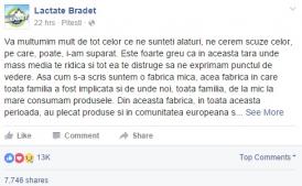 Apărut în luna februarie a acestui an, scandalul lactatelor cu E.Coli de la societatea BRĂDET SRL Brădetu (CUI: 14062704) a dispărut relativ rapid din peisajul mediatic, în principal din cauza apariţiei unor subiecte mult mai “zemoase”, cum a fost, de exemplu, HEXI PHARMA, scrie supervizor.ro.La momentul scandalului, în martie 2016, beneficiind de o susţinere hazardată a mediului online şi de o iniţiativă pripită a realizatorului TV Dragos PĂTRARU, administratorul societăţii argeşene, Marius Nicolae BADEA (44 de ani) a anunţat, după modelul Dan DIACONESCU – “OLTCHIM-ul poporului”, că “împreună cu voi, doresc să construim un brand al tuturor românilor «Brădet Românesc SA», un produs autentic ROMÂNESC”.