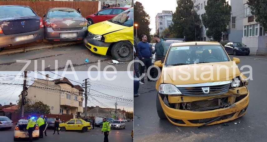 Un accident rutier a avut loc în această după amiază în municipiul Constanța la intersecția străzilor București cu Avram Iancu. Din primele informații în accident au fost implicate două autoturisme taxi și alte două mașini parcate. Mai exact trei autoturisme Dacia Logan și o Mazda au fost avariate în urma accidentului. O persoană a fost rănită și a ajuns la spital