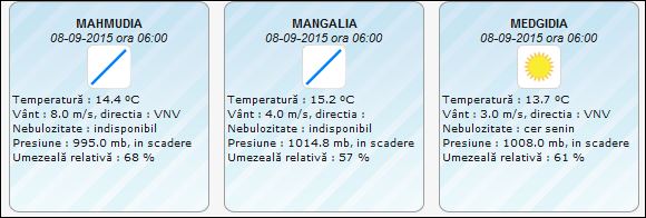 Temperaturi înregistrate la ora 06.00 la staţiile meteo din judeţul Constanţa