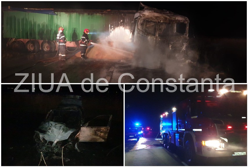 Teribil accident în judeţul Constanţa. Un tir şi un autoturism au pierit în flăcări. Două victime (galerie foto+video)