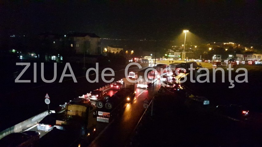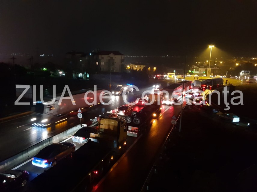 UPDATE. Teroare în trafic în apropiere de Ovidiu. Circulația este blocată pe Autostrada A4 și pe drumurile spre și dinspre Ovidiu după tragicul accident (foto+video)