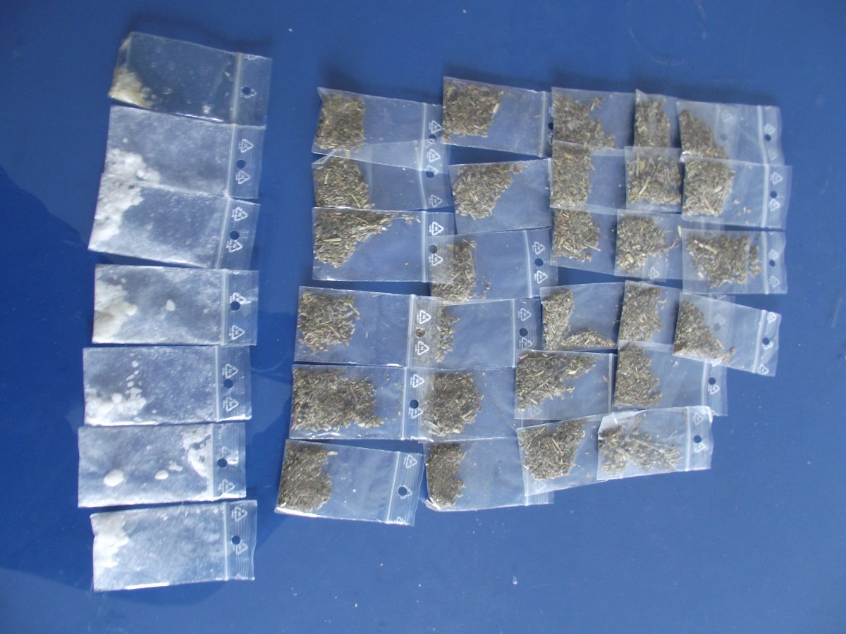 O oră mai târziu, jandarmii au surprins în zona Casa de Cultură, două persoane de 25 respectiv 28 de ani, care aveau asupra lor trei pliculeţe de staniol cu substanţă vegetală halucinogenă, de culoare albă.