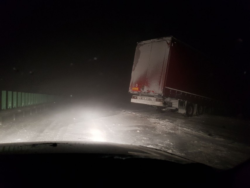 TIR proiectat în șanț pe Autostrada A2 din cauza viscolului