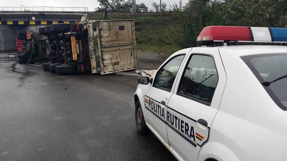 Potrivit reprezentanților poliției, tirul a ieșit de pe partea carosabilă, iar în urma impactului nu au fost înregistrate victime.