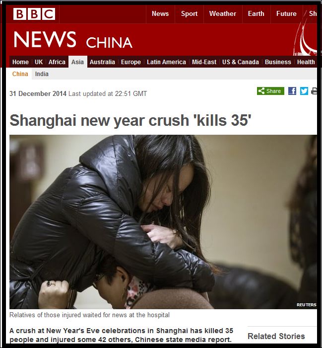 Tragedie în China în noaptea de Anul Nou Cel puţin 35 de morţi şi 42 de răniţi într-o busculadă