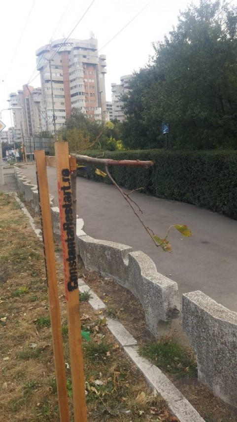 Trei copaci, plantaţi în cadrul acţiunii „Trees need people - Constanţa Restart” au fost distruşi de persoane necunoscute.În plus, cineva, rău intenţionate au sustras şi doi tutori montaţi pentru a induce o creştere dreaptă şi pentru a proteja copacii.