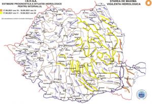 Institutul Naţional de Hidrologie şi Gospodărire a Apelor a emis o nouă avertizare hidrologică, valabilă până duminică, 18 iulie, ora 16.00.