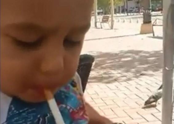 Scena s-a petrecut la o terasă și a fost filmată de alți martori. Tinerii care se aflau la masă, probabil la fel de inconștienți, au vrut să vadă și dacă bebelușul poate aprinde singur o țigară şi i-au întins bricheta.