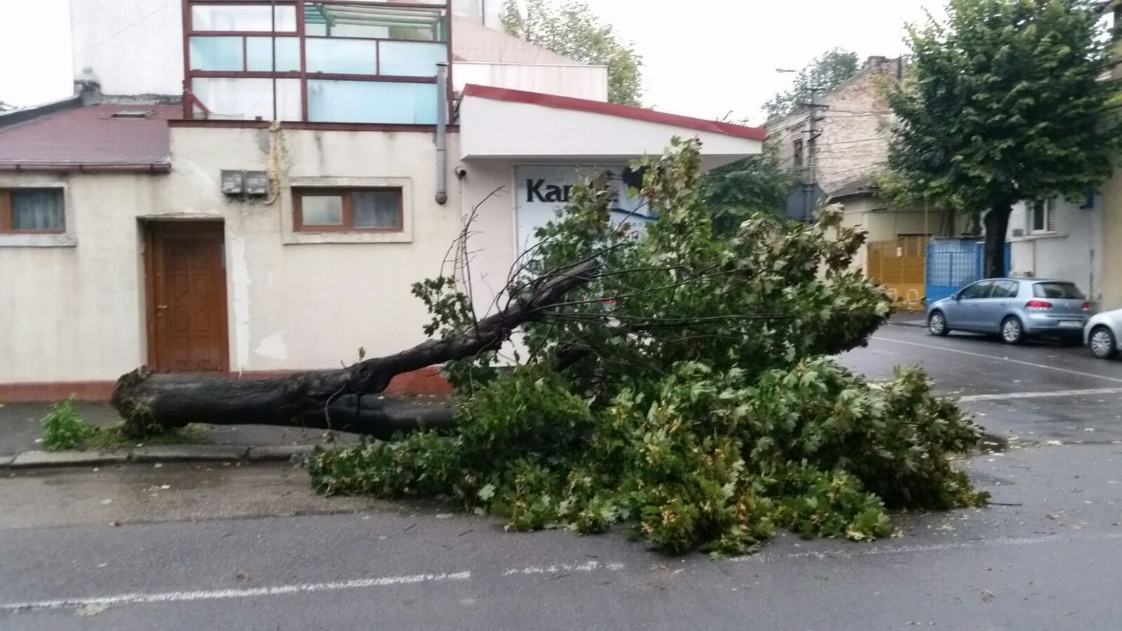 Vântul de azi noapte şi vremea potrivnică au reuşit să dărâme un copac. Acesta se afla pe strada Lahovari colţ cu strada Tudor Vladimirescu.După cum se poate observa nu este un copac subţire sau unul uscat. Este un arbore tânăr, care a cedat sub presiunea vântului puternic.