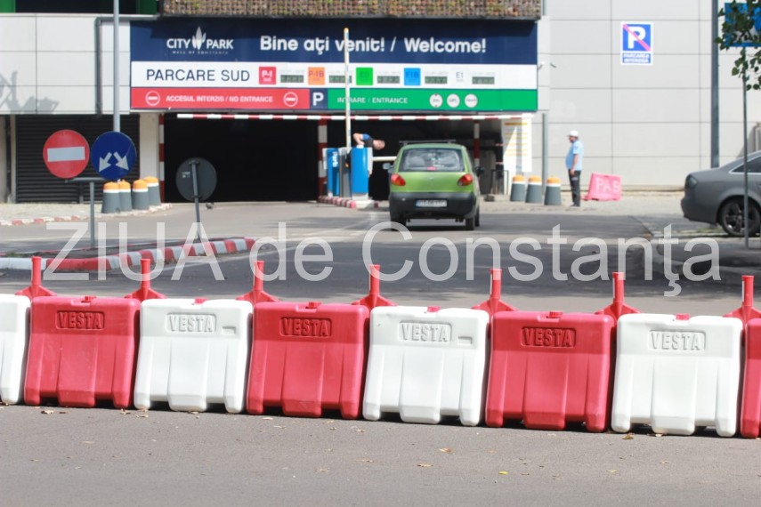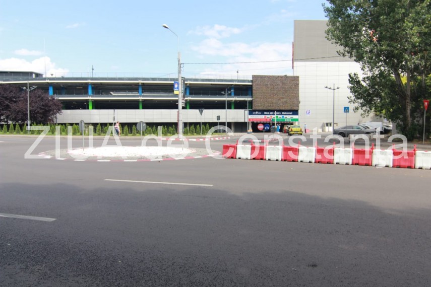 Un sens giratoriu din municipiul Constanța a fost blocat. Ce variante au șoferii care vor să intre în parcarea mall-ului din zonă (galerie foto+video)