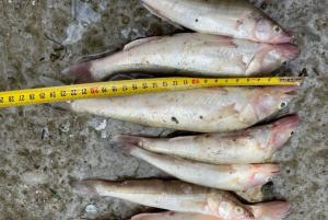 În urma controlului efectuat au fost ridicate în vederea confiscării 41 kilograme peşte din speciile guvide şi hanus, 57 unelte de pescuit (cuşti de pescuit), precum şi ambarcaţiunea folosită la pescuit.