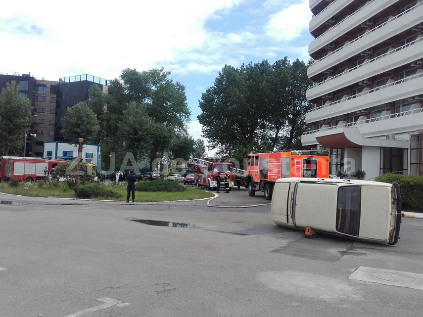 Persoanele din incinta hotelului au fost salvate, iar în aceste momente intervine descarcerarea pentru salvarea unei persoane, în simularea unui accident rutier.