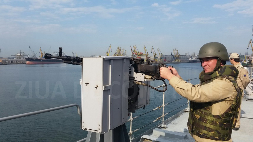 Chiar în aceste momente, la ieșirea din Portul Constanța, fregata Regina Maria a fost „atacată” iar militarii din grupa de apărare apropiată a navei resping cu foc atacul.