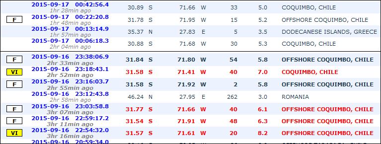 Epicentrul a fost localizat la intersecţia coordonatelor geografice 31.57 S/71.61 W.