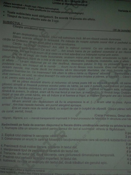 UPDATE. De unde provin cei 14 elevi eliminaţi de la prima probă scrisă Iată subiectele probei scrise la Limba română în cadrul examenului de Bacalaureat 2014