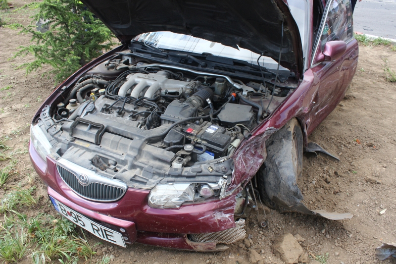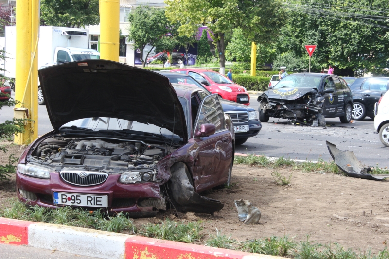UPDATE. Doi bodyguarzi, răniţi: Maşina unei firme de pază, lovită de un autoturism condus de un şofer beat