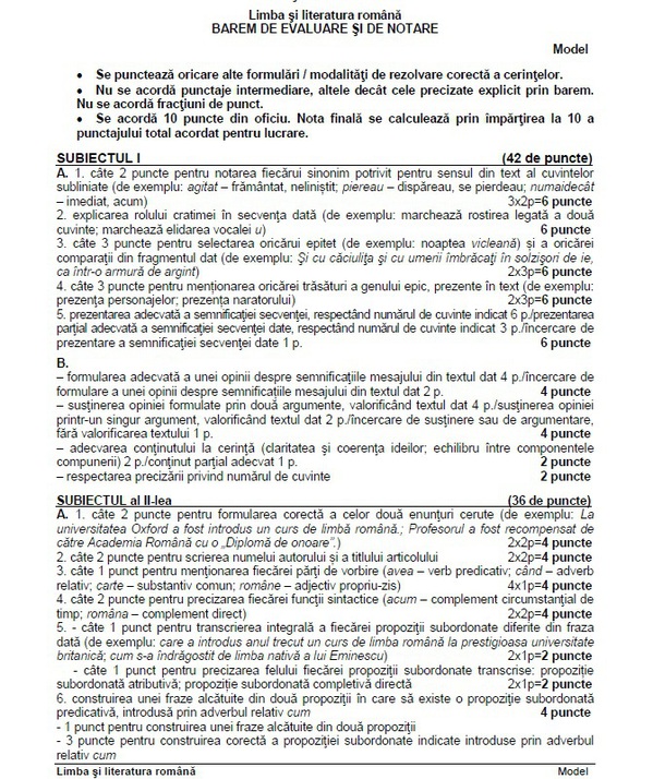 UPDATE. Evaluare naţională Rezolvarea subiectelor la Limba şi literatura română