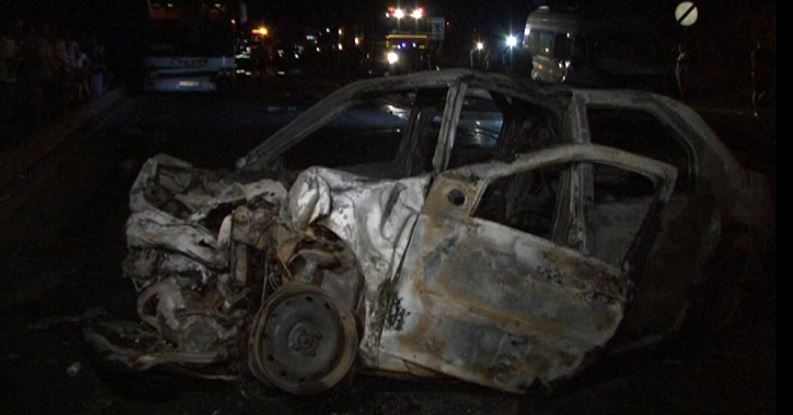 Persoana care a murit carbonizată era pasagerul din dreapta-faţă în Dacia Logan. Din păcate, a rămas încarcerată în urma impactului şi a ars de vie, după ce maşina a luat foc. Şoferul care a provocat tragedia a reuşit să iasă din maşină, însă este foarte grav rănit şi a fost transportat la spital de echipajul SMURD.