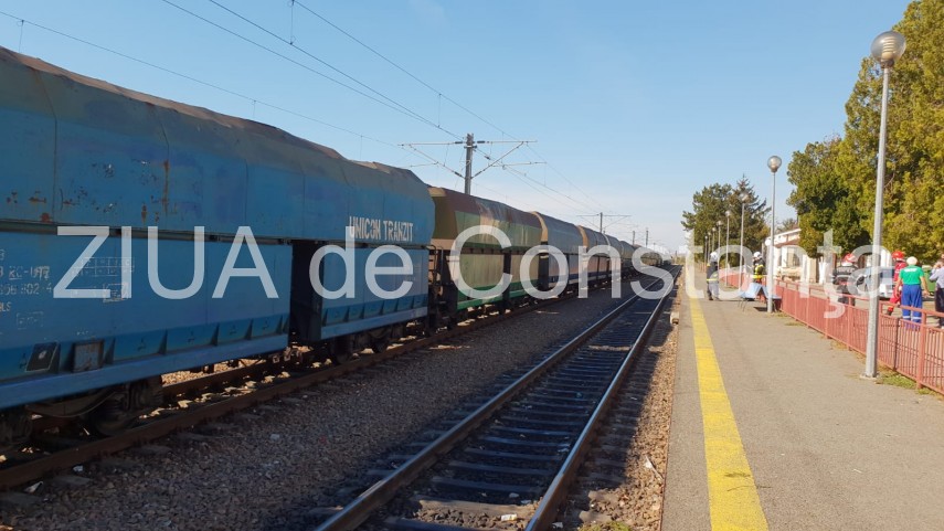 UPDATE. Imagini de la eveniment. Incendiu în Gara Dorobanțu din județul Constanța. Mai multe vagoane încărcate