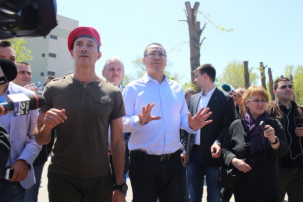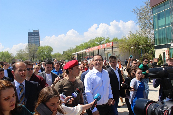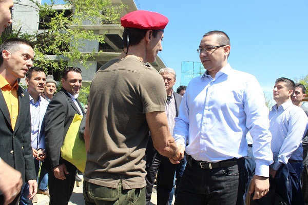 Primarul municipiului Constanţa, Radu Mazăre, și primul ministru Victor Ponta au ajuns la pasarela pietonală de pe bulevardul Mamaia, din dreptul Satului de vacanţă.