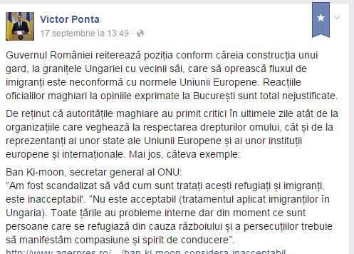 După ce i-a criticat pe oficialii croaţi, ministrul ungar de Externe, Peter Szijjarto, este implicat într-un schimb de replici cu omologul său român, pe tema gardului de sârmă ghimpată pe care Ungaria îl va construi între cele două ţări pentru a opri valul de imigranţi, relatează Associated Press în pagina electronică. Ministrul român de Externe, Bogdan Aurescu, a declarat, ieri, că ridicarea de garduri "este un gest mai degrabă autist şi inacceptabil", care încalcă spiritul Uniunii Europene.