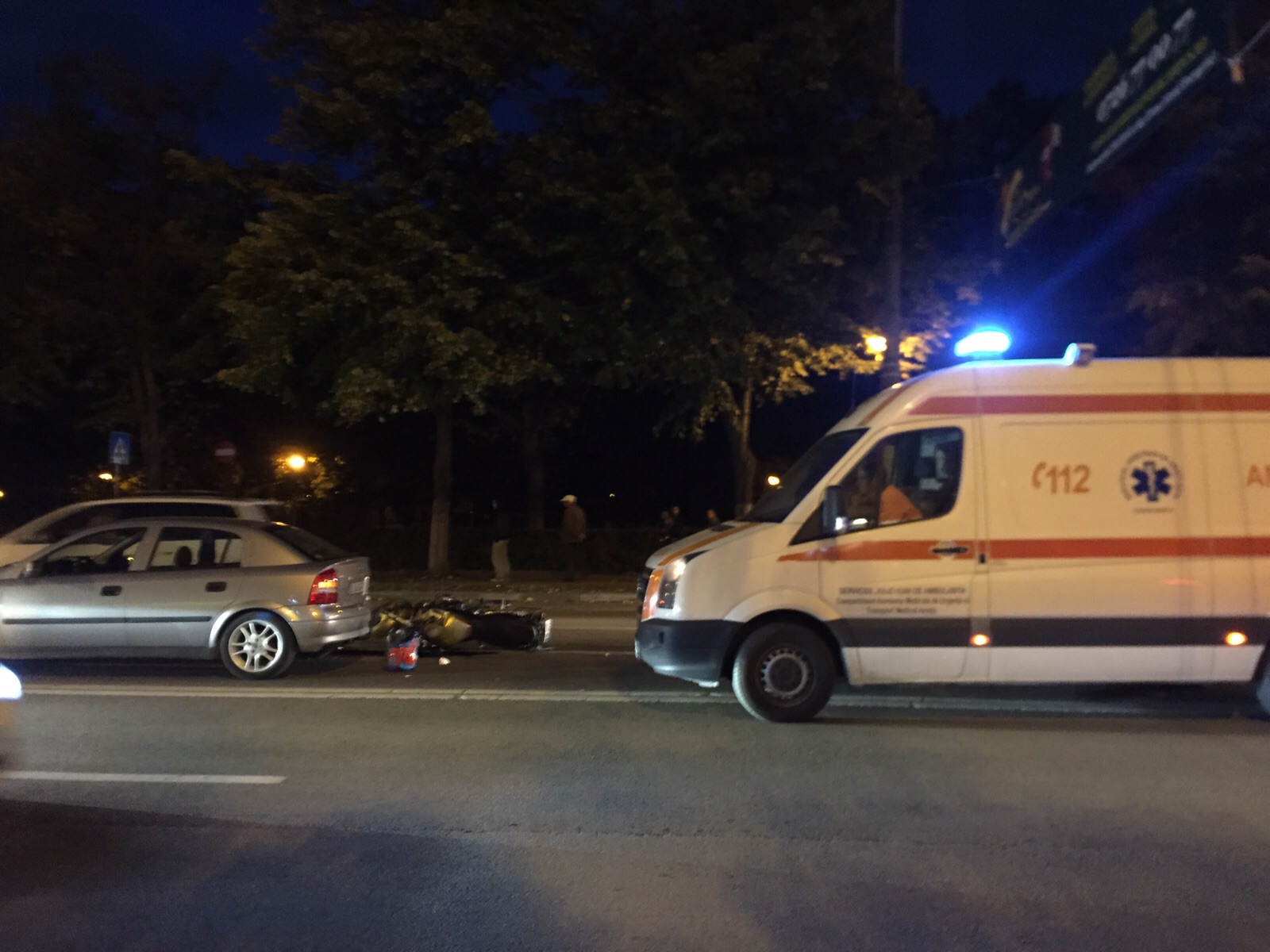 Din primele informații, este vorba despre coliziunea dintre un autoturism și o motocicletă. Se pare că motociclistul a fost rănit. Un echipaj al Serviciului de Ambulanță a sosit la fața locului pentru acordarea de îngrijiri de specialitate.