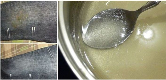 Tot ce aveți nevoie este puțină apă și zahăr. Se amestecă apă cu zahărul până când acesta se topeşte. Se aplică rezultatul obţinut pe pată, se lasă să acţioneze până la 30 de minute şi apoi se spală blugii. Rezultatul este uimitor, pata a dispărut ca prin minune.
