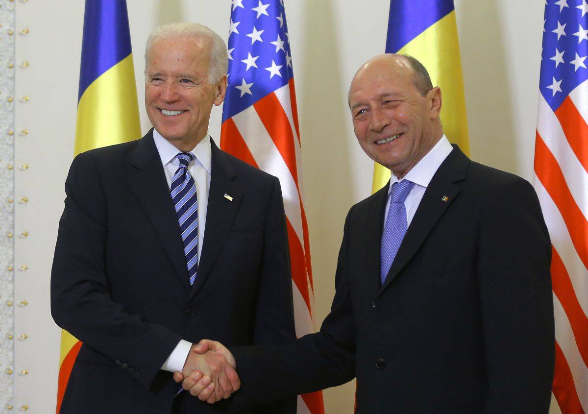 „Preşedintele României, domnul Traian Băsescu: Bună ziua, bine v-am găsit! Astăzi am avut o întâlnire extrem de importantă cu domnul vicepreşedinte Biden, o întâlnire în care am discutat principalele subiecte de pe agenda bilaterală şi de pe agenda regională. Afirm că după intrarea României în NATO şi în Uniunea Europeană, Parteneriatul strategic pentru secolul XXI cu SUA este pentru noi a treia realizare politică de după Revoluţie. Salutăm angajamentul ferm al Statelor Unite pentru Articolul 5 al Tratatului. Am discutat, de asemenea, despre nevoia ca în România să consolidăm statul de drept, statul de drept, ca o premisă a avansului în realizarea la parametri maximi a Parteneriatului strategic cu Statele Unite. În discuţii am mulţumit vicepreşedintelui Biden pentru reacţia imediată pe care a avut-o Statele Unite la momentul declanşării conflictului din Ucraina şi a anexării ilegale a Crimeii, prin suplimentarea de forţe aeriene, forţe navale şi forţe terestre care să fie gata să participe la orice fel de misiune, în mod deosebit la misiunea de descurajare a apetitului Rusiei de a redeveni Uniunea Sovietică. Este o reconfirmare şi, de data aceasta, o probă a faptului că Statele Unite îşi respectă cuvântul. De aceea probabil şi exigenţa Statelor Unite în relaţia cu România, ca şi noi să ne respectăm cuvântul şi să realizăm statul de drept. Am discutat despre vulnerabilităţile create la Marea Neagră. De asemenea, am discutat tematica viitorului summit NATO. O mare vulnerabilitate a regiunii a fost analizată, şi anume dependenţa energetică exagerată de gazele din Federaţia Rusă. În sfârşit, dar nu în ultimul rând, am făcut o scurtă trecere în revistă a creşterii foarte puternice a investiţiilor americane în România, care au creat zeci de mii de locuri de muncă şi îi dădeam domnului vicepreşedinte un exemplu - am fost de curând la inaugurarea unei mari firme americane, Lufkin, la Ploieşti, şi primul lot produs de pompe pentru industria petrolieră era pentru export în Statele Unite. Vă mulţumesc”.