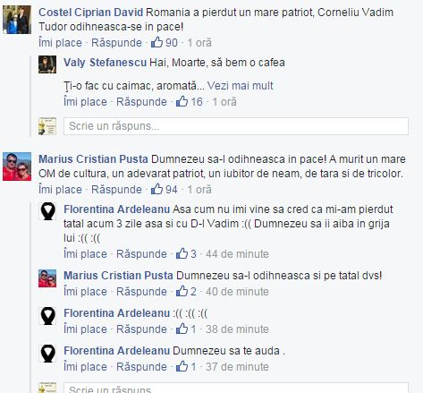 Fondatorul PRM Corneliu Vadim Tudor, în vârstă de 65 de ani, a murit, astăzi, în Centrul Clinic de Urgenţă de Boli Cardiovasculare al Armatei, unde a fost dus după ce i s-a făcut rău.