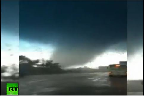 Specialiştii spun că tornada, care a durat 30 de minue, a apărut din cauza taifunului Mujigae, care a ajuns în sudul Chinei, duminică.